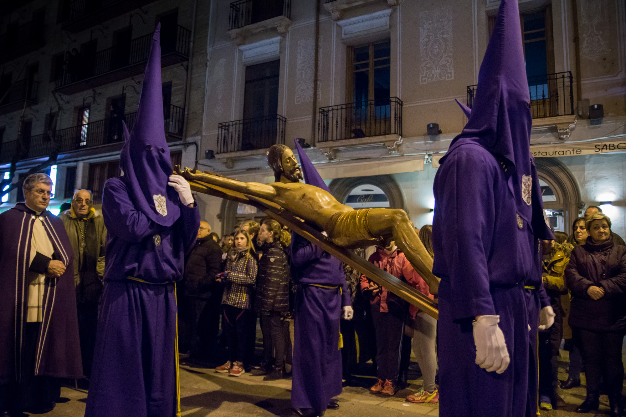 • Paso del Nazareno, Jesús con la Cruz a hombros camino del Calvario. Fue adquirido por la cofradía, en el taller Cristiano de Olot (Gerona) en 1954. El Paso representa, “Jesús encuentra a su Madre María con María Magdalena y el esbirro”. Es portado por los cofrades a hombros con gran sacrificio, en relevos de 16 hermanos.