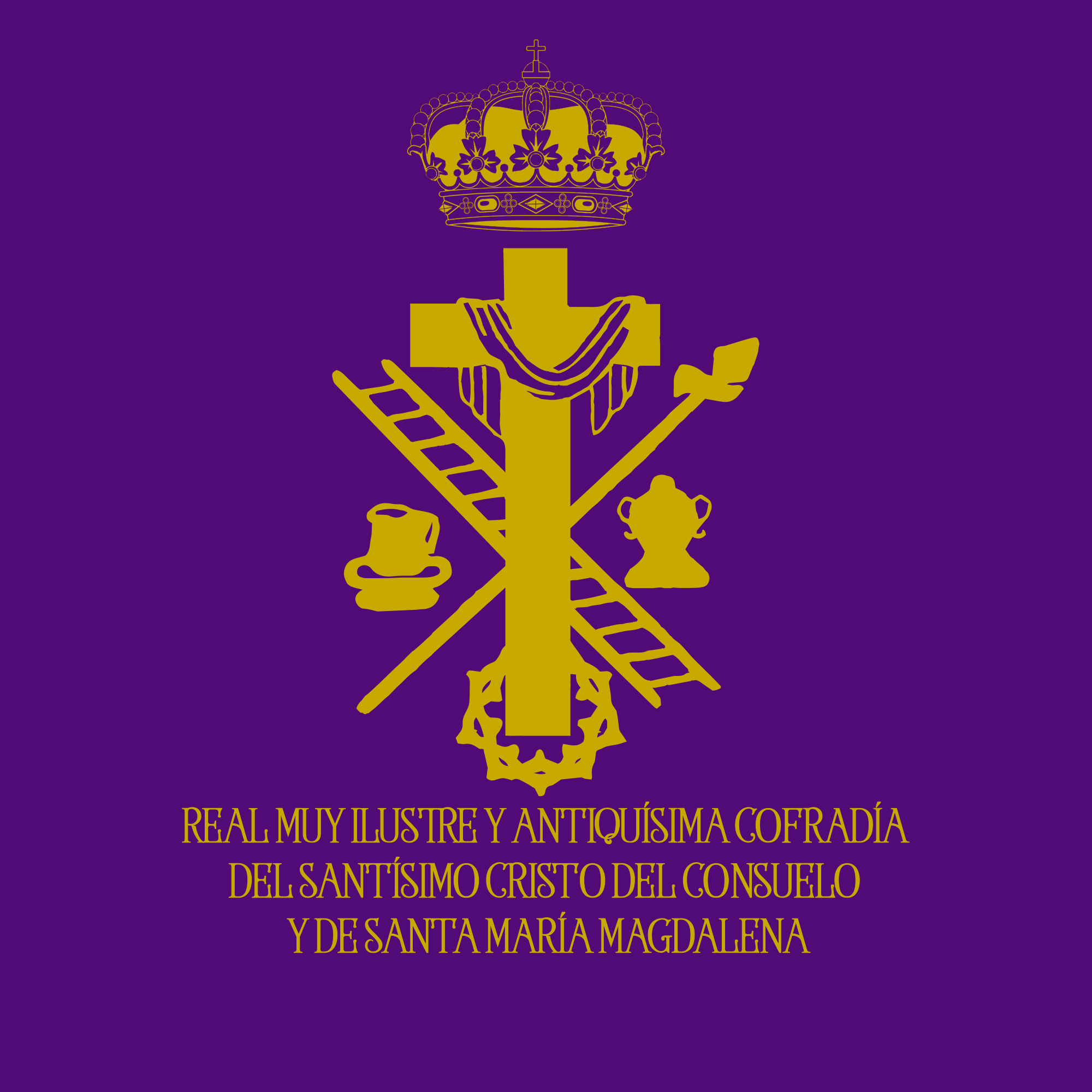 Pintado a mano en 1954 por D. Victorino Aranda. En el emblema sobre campo morado encontramos una Cruz, en cuyos brazos se distingue la Sábana Santa, al pie de la Cruz, entrelazados, una escalera y una lanza y en los lados un jarrón, palangana y esenciero con una corona de espinas al pie de la Cruz. El escudo o blasón es idéntico, siendo de forma suiza presentando tres puntas en el jefe.
