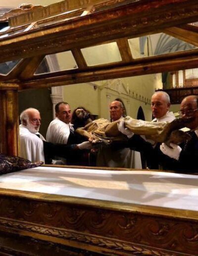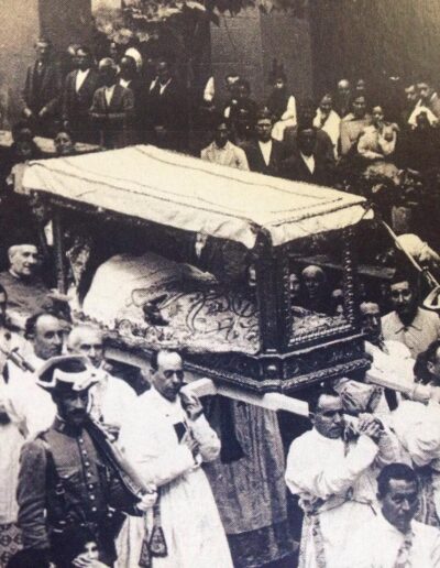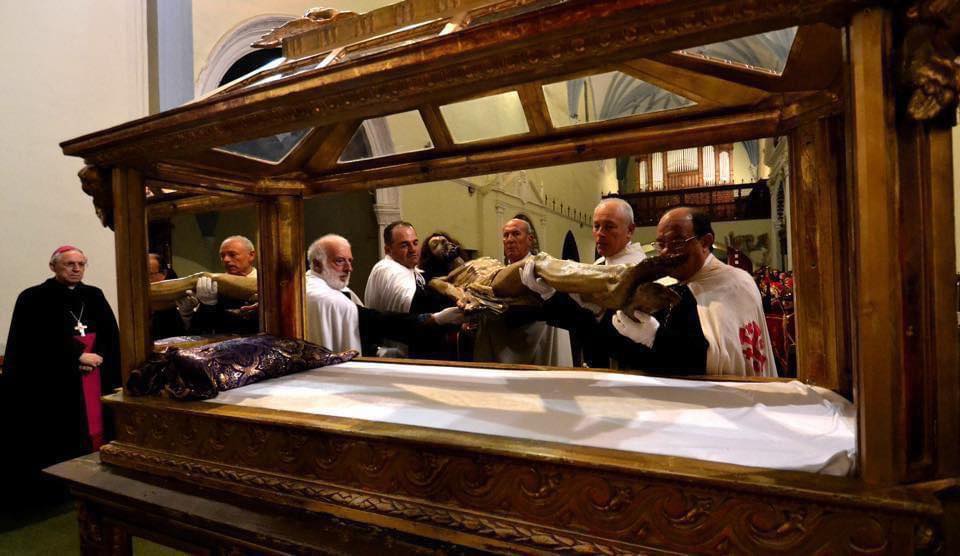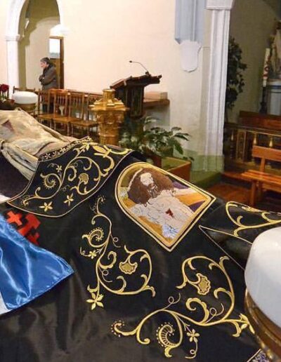 La cama-trono de Cristo yacente que representa el Santo Entierro.