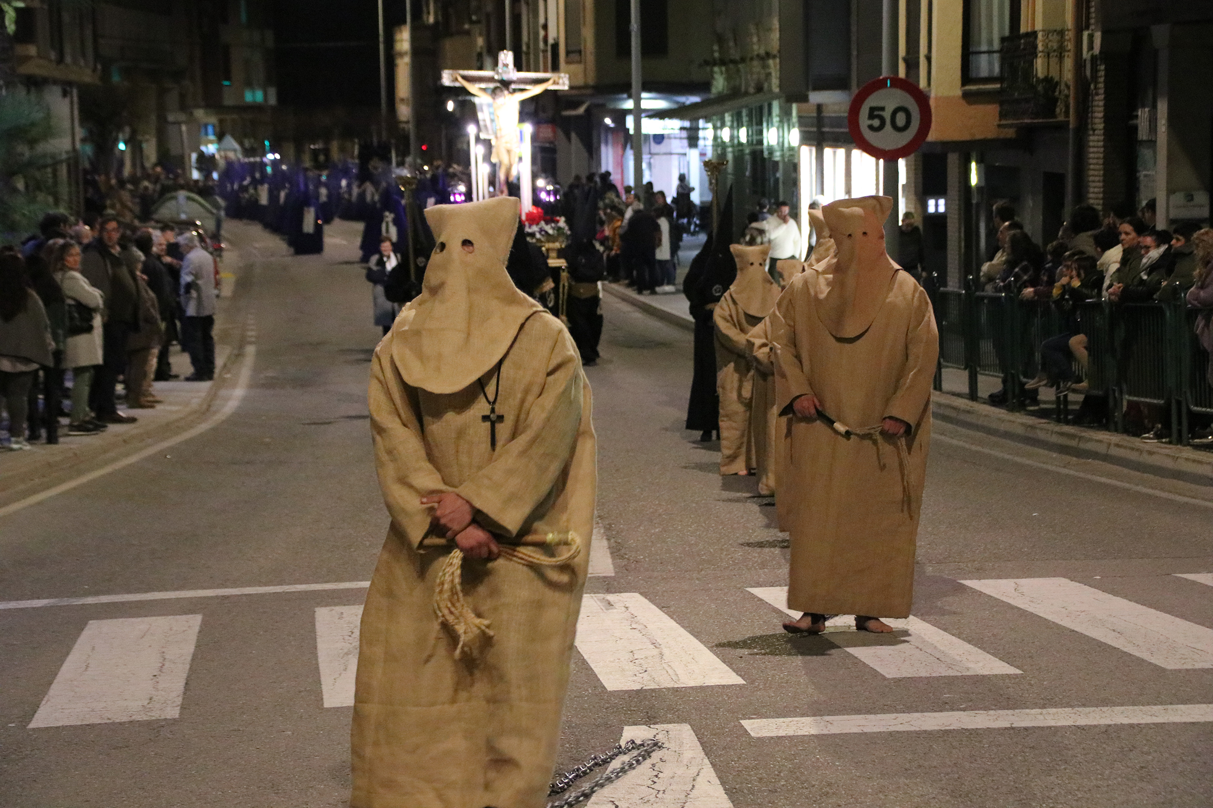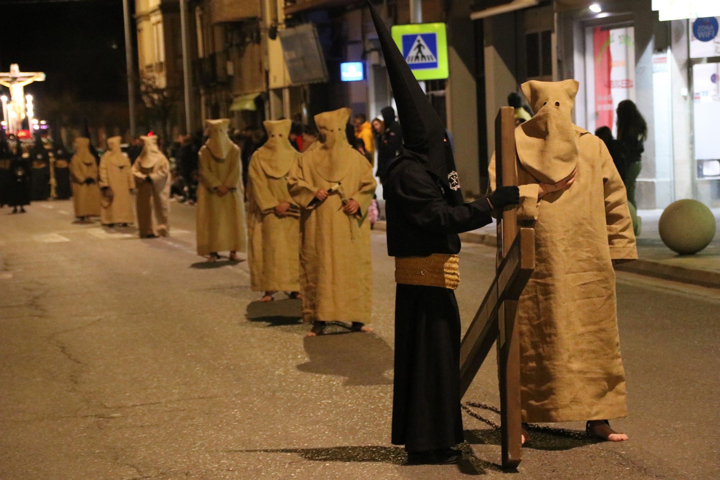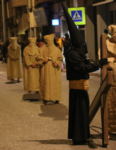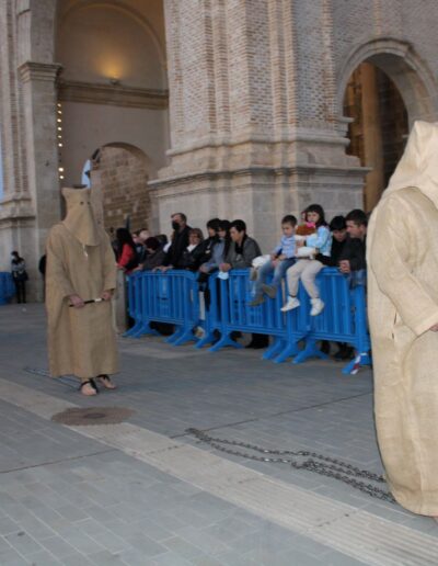 La salida de estos penitentes data de mediados del siglo XVIII, como desagravio por una profanación a la imagen del Santo Cristo. Comenzaba la procesión en la Iglesia de San Francisco, vistiendo los devotos, burdos de sacos. Caminaban con los pies descalzos, llevando en las manos los atributos de la Pasión de Cristo. Recorrían las calles de la ciudad, pasando por la Iglesia de la Virgen del Río y el Convento de Santa Ana de Carmelitas Descalzas, finalizando el recorrido en la Iglesia de San Francisco. En 1958 se decidió acompañar a estos penitentes en procesión en el viernes anterior al Viernes de Dolores, hasta su desaparición a finales de los años 70. Estos penitentes son nuevamente incorporados, en las procesiones de Martes Santo y Viernes Santo de la Cofradía del Silencio del Santísimo Cristo del Rebate, desde la Semana Santa del año 1999.